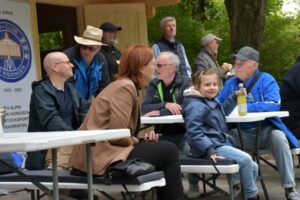 frühen Morgen des letzten Samstages bei der Eröffnung der Stockbahn und der Begrüßung der